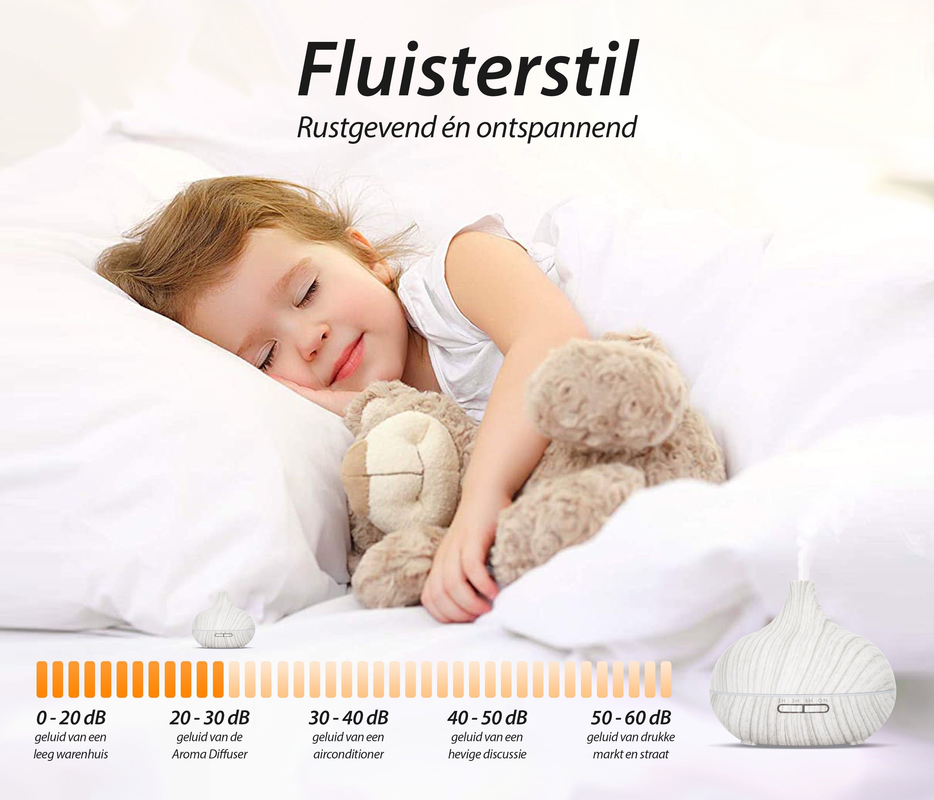 De Aroma Diffuser Essential Pro maakt gebruik van fluisterstille ultrasone technologie waardoor deze diffuser zo stil werkt dat u het amper opmerkt. Bovendien maskeert de Aroma Diffuser Essential Pro ook nare geurtjes waardoor u altijd een lekkere, frisse geur in huis heeft.