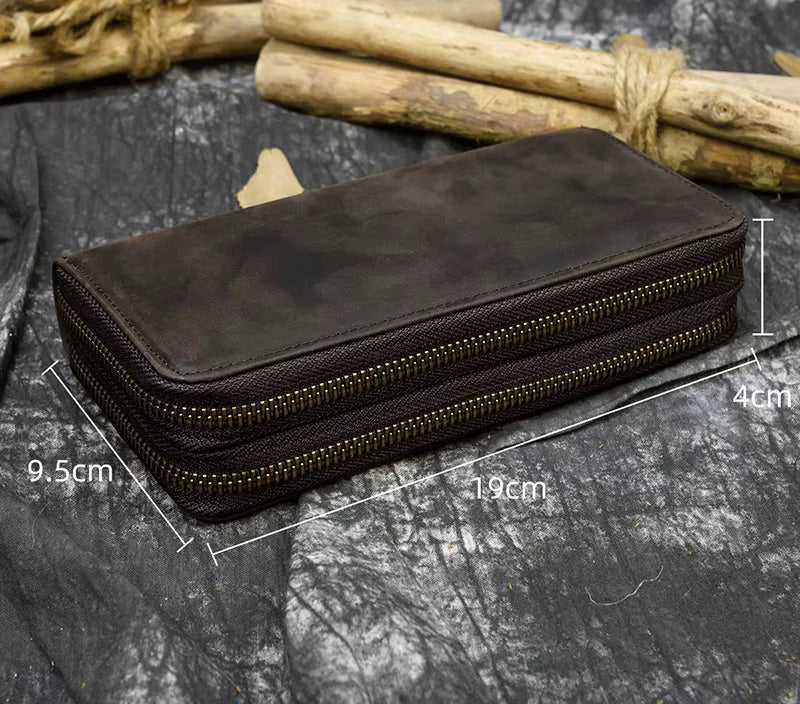Overige modellen hebben een dubbele ritssluiting een een afmeting van B9,5cm x H19cm x D4cm.