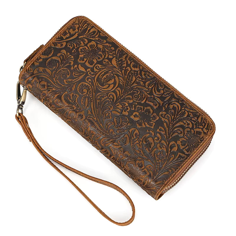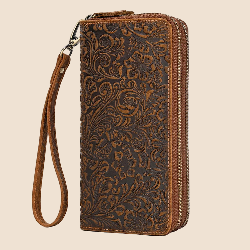 Het subtiel gegraveerde patroon en de warme cognackleur maken Florence een ideale match met onze Lucia Lederen Handtas met Floral Design, maar ze combineert ook prachtig met elke leren damestas in jouw collectie.