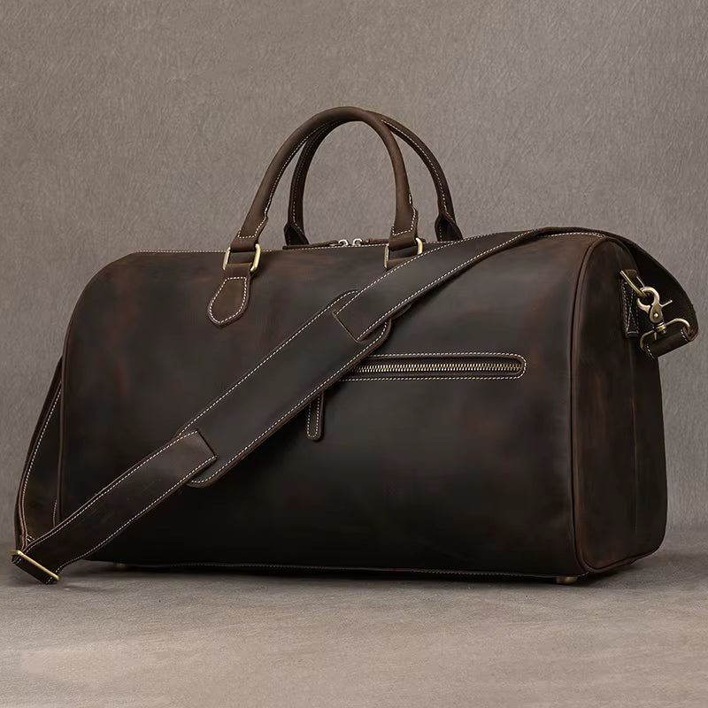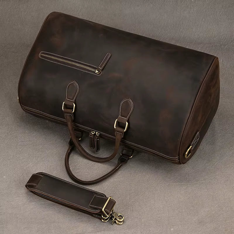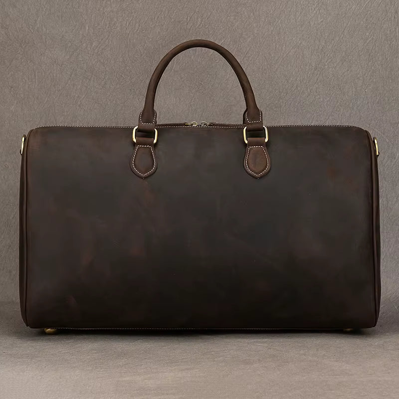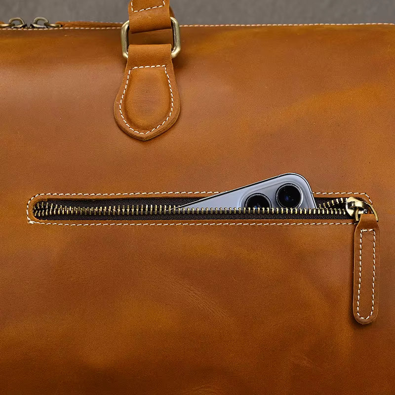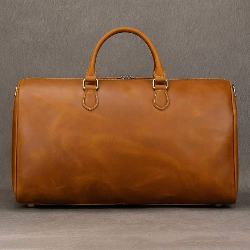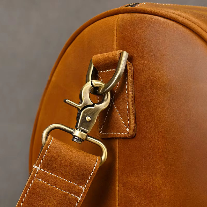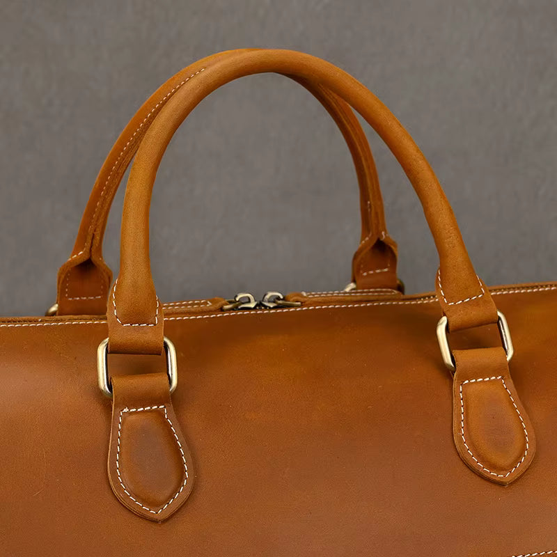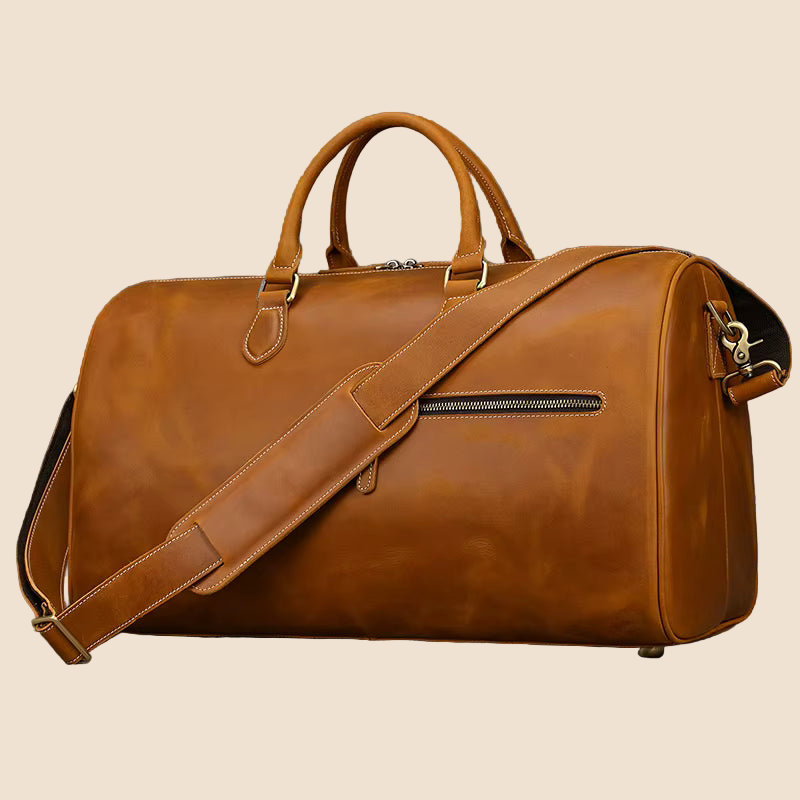Gemaakt van hoogwaardig écht leer met een subtiele, warme glans, voelt deze tas stevig, zacht en betrouwbaar aan. Perfect voor een weekendje weg, een city trip, je dagelijkse sportmoment of als handbagage op het vliegveld.