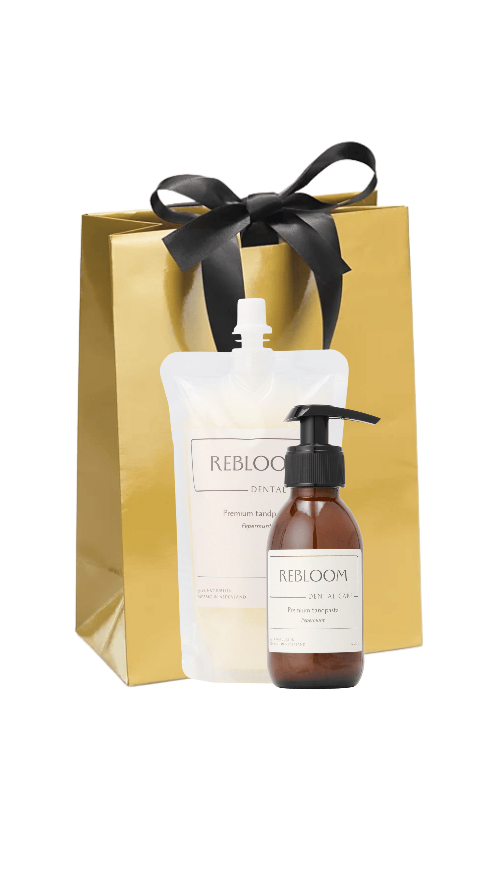 Dit cadeautje is speciaal samengesteld om zes tubes tandpasta te vervangen met de natuurlijke tandpasta van ReBloom Care.