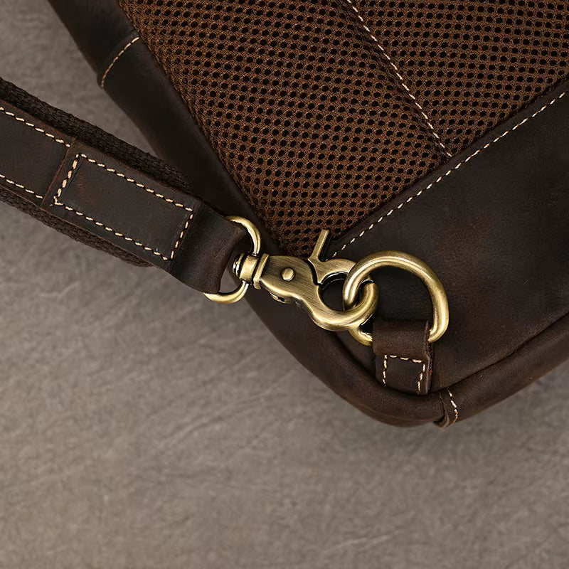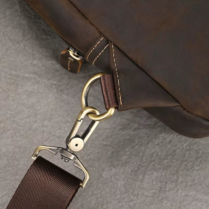 Paolo is de ideale crossbody tas voor mannen die gemak, uitstraling en veiligheid willen combineren. Gemaakt van premium rundleer met een diepe, warme bruine kleur die in de loop der jaren alleen maar mooier wordt.