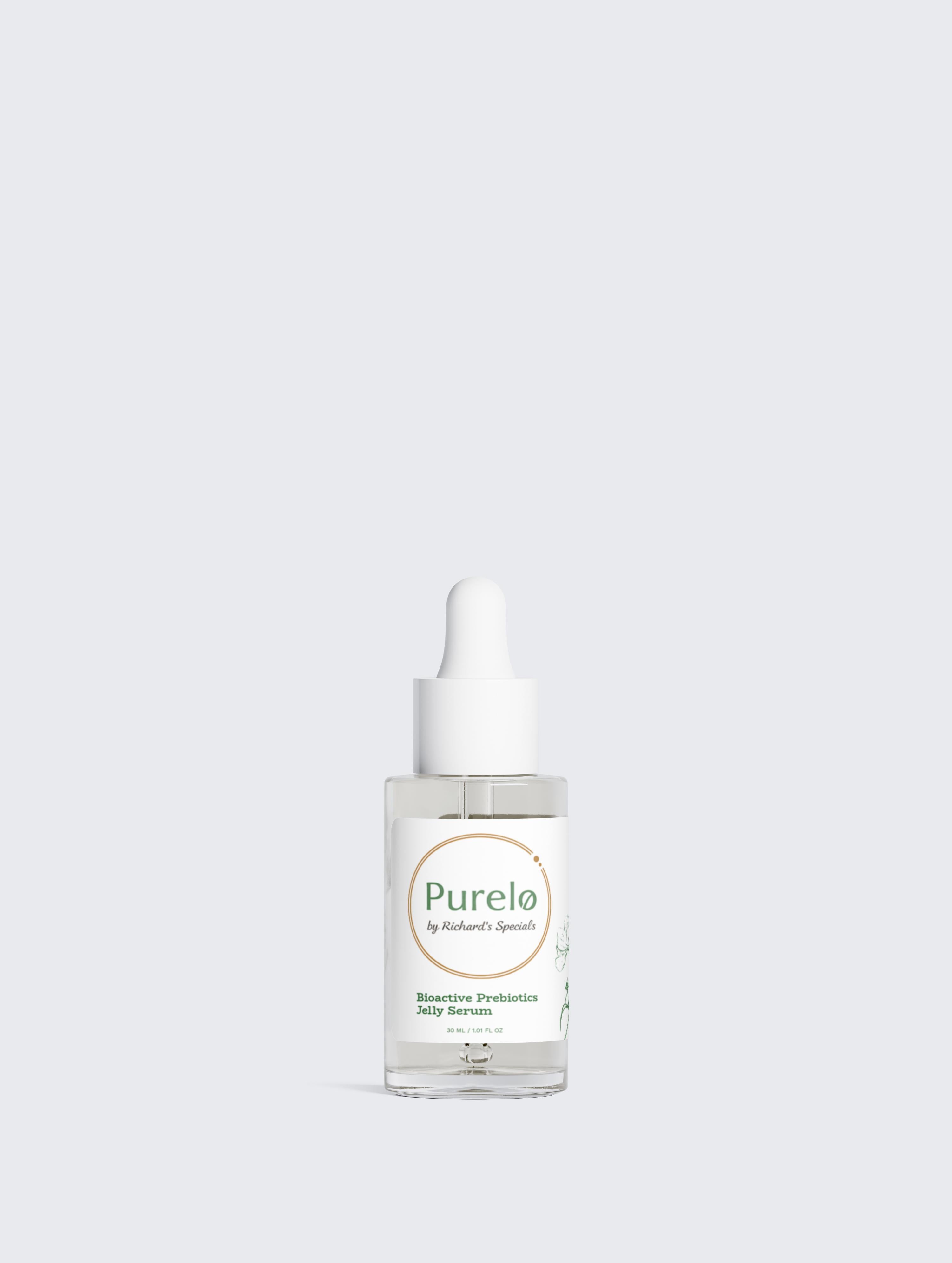 Purelo Bioactive Prebiotics Jelly Serum is ontwikkeld om de huid te kalmeren, te hydrateren en opnieuw in balans te brengen.