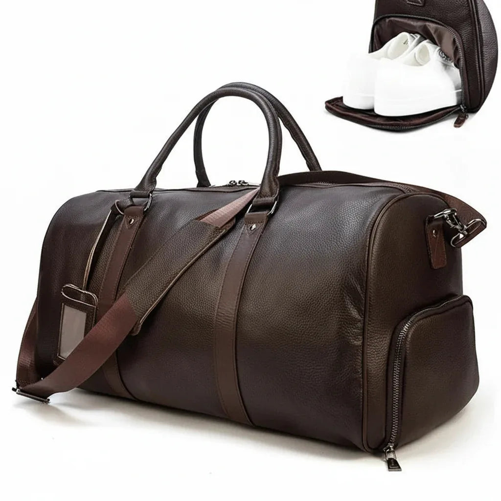 Gemaakt van hoogwaardig rundleer en ontworpen voor mannen die stijl en functionaliteit probleemloos willen combineren — of je nu richting de sportschool gaat, een weekend weg plant, of gewoon georganiseerd de dag door wilt.
